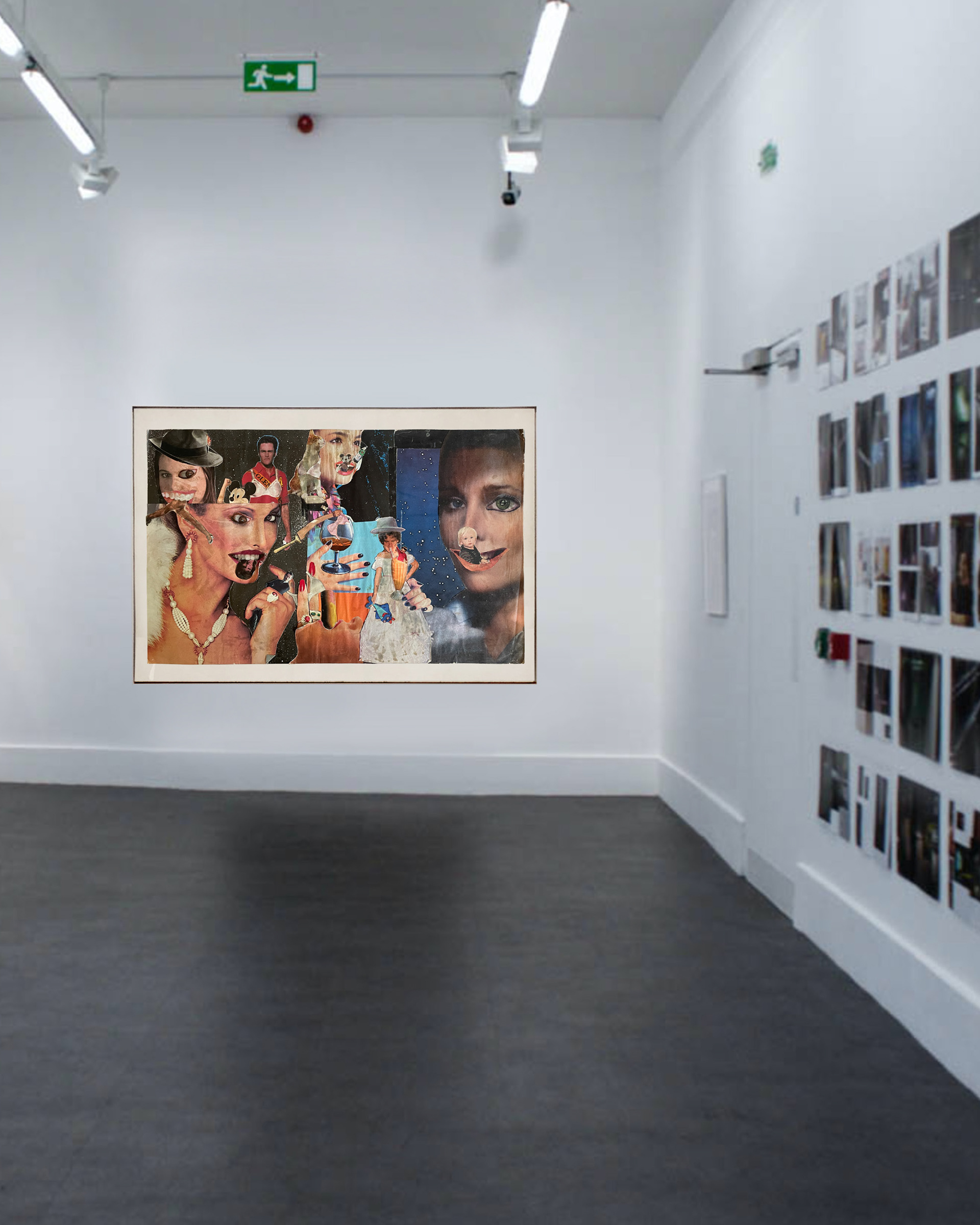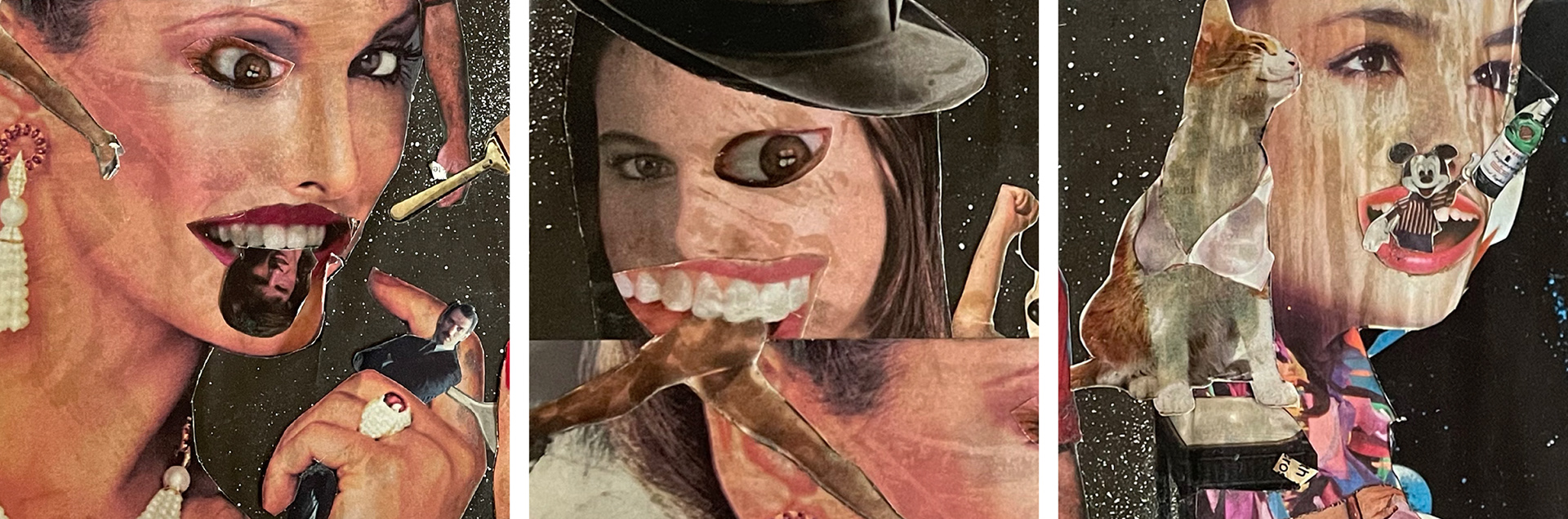 Figures, fragments, and objects collide in unexpected ways: glamour, performance, humor, and suggestion recur throughout the composition. Dislocated bodies, exaggerated gestures, and playful interruptions create a narrative that resists a single reading, inviting viewers to discover their own connections and themes within the image.