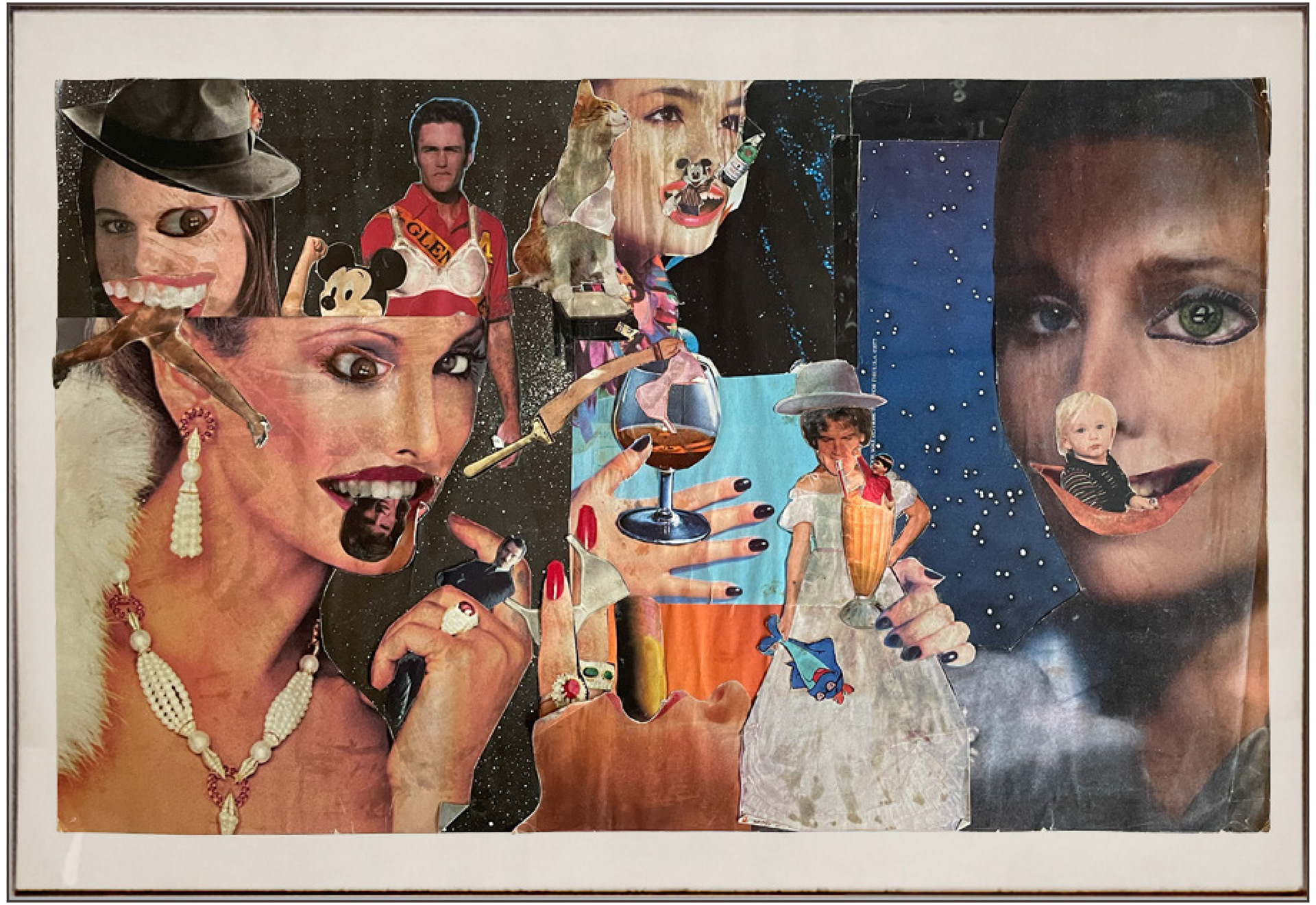Created during Linda Modica’s early years on Long Island, Magazine Collage is a hand-cut, paste-assembled work drawn from found magazine imagery. The piece reflects a young artist’s instinctive visual language—one shaped by popular culture, repetition, and surreal juxtaposition.
