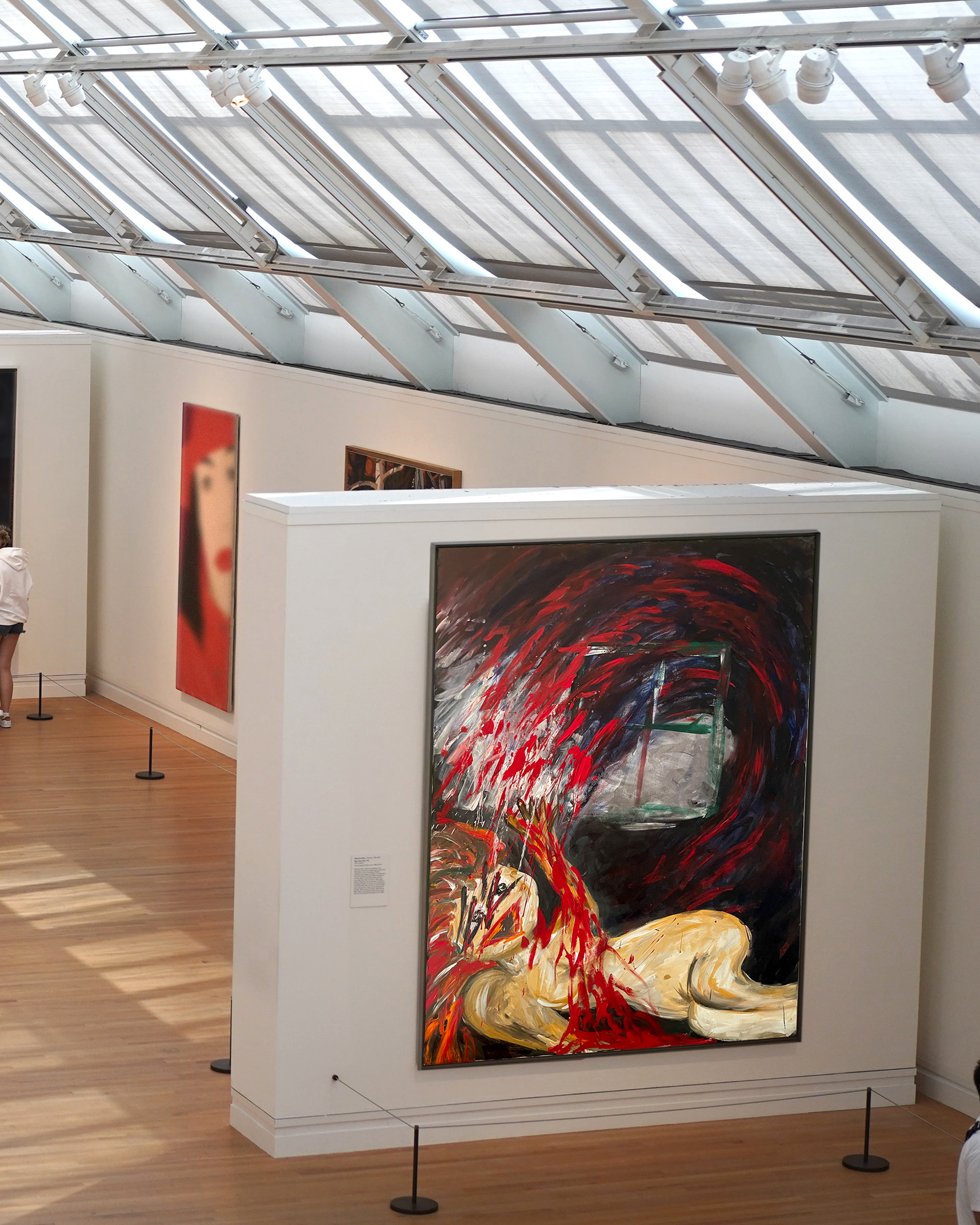 The Nightmare was painted in 1985 following a recurring dream that began in early adolescence. The figure’s raised forearm and fixed gaze register a moment of instinctive defense, as if bracing for an approaching force just beyond the frame. Fragmented form and turbulent motion compress fear, memory, and anticipation into a single psychological space.